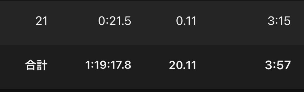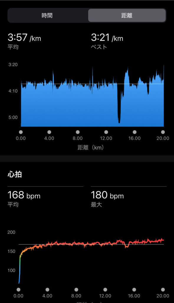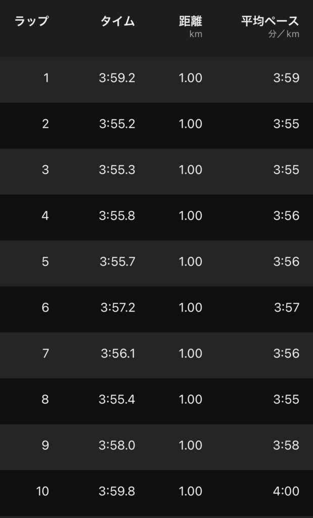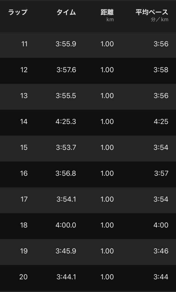 ラスト2kmは3’40″/km台でフィニッシュ。