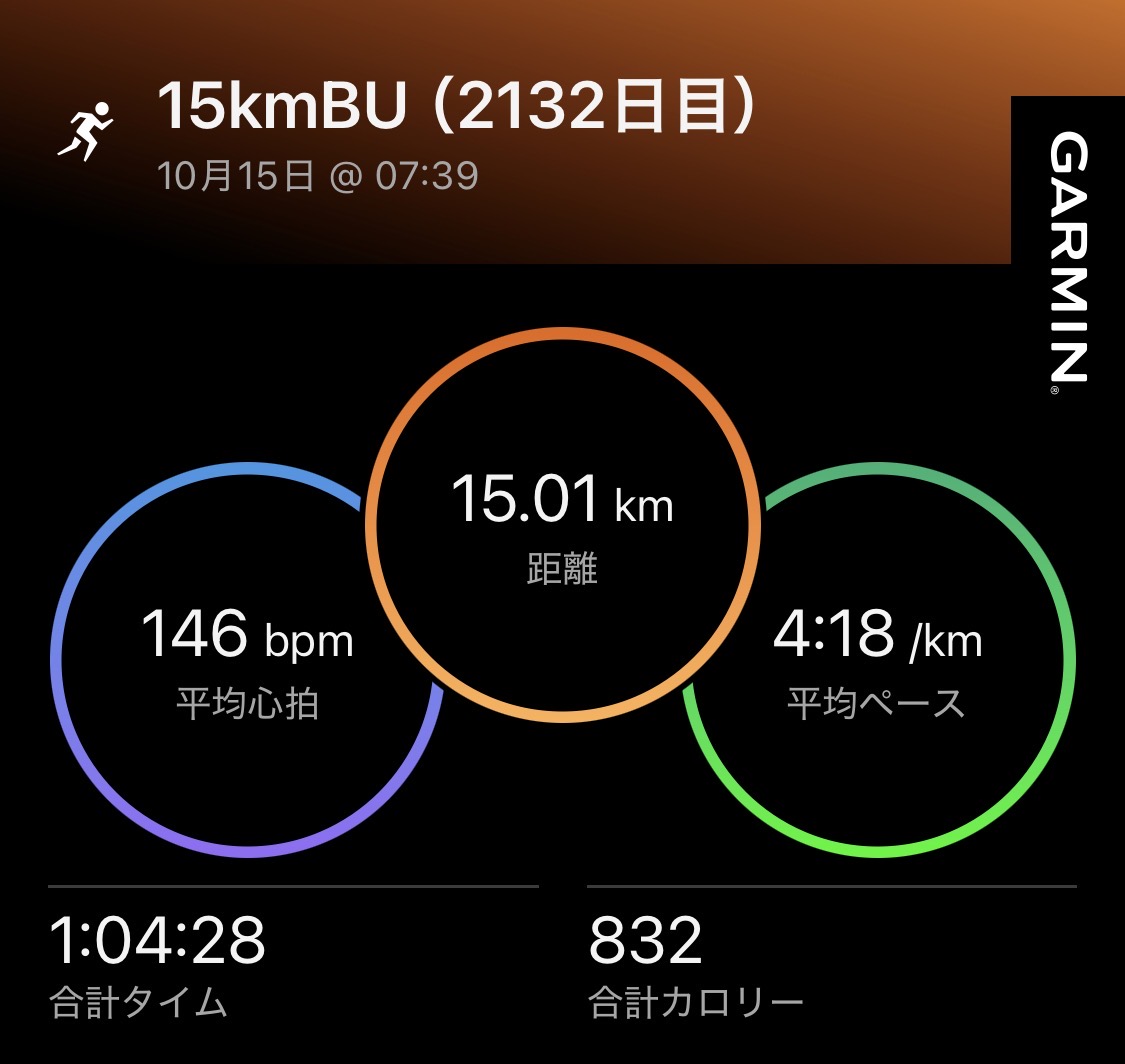 ・15kmBU(ave4’18″/km)。