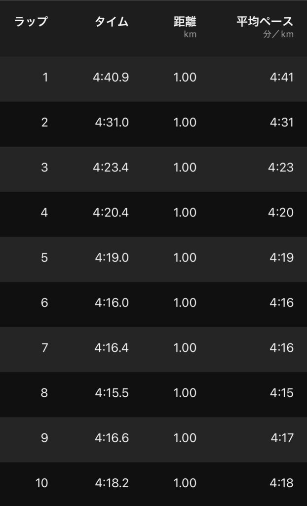 4’41″→4’07″/km。