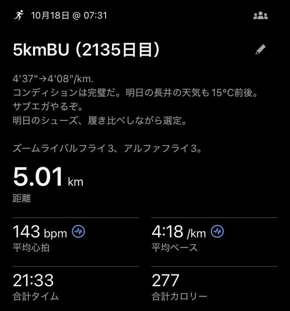 2135日ランニング休まず継続中。