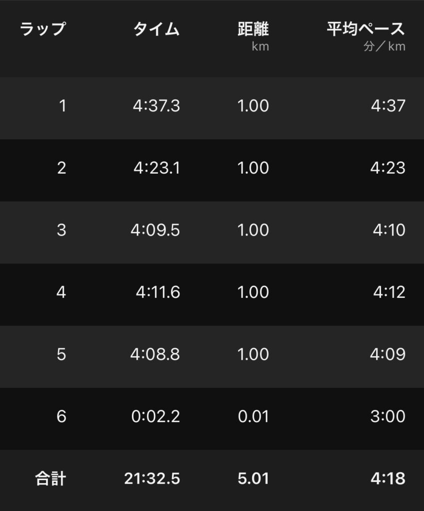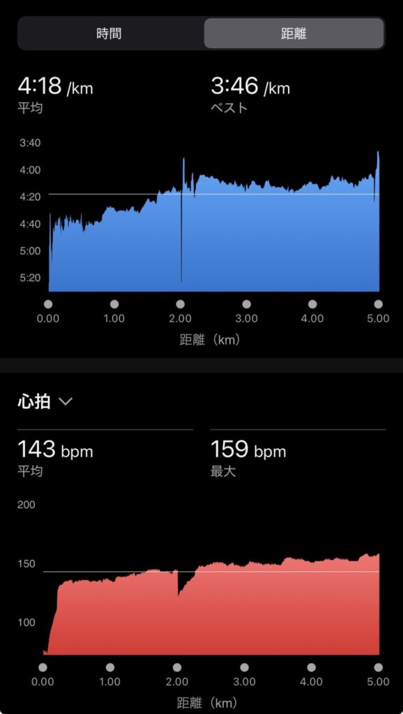 ・5kmBU(ave4’18″/km)。