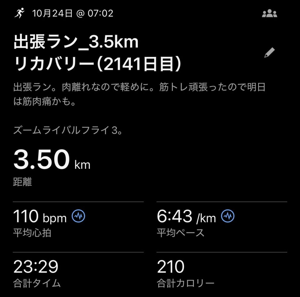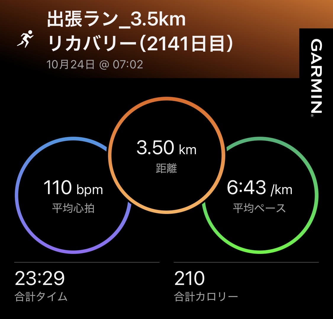 2025.10.24 出張ラン_3.5kmリカバリー(2141日目)