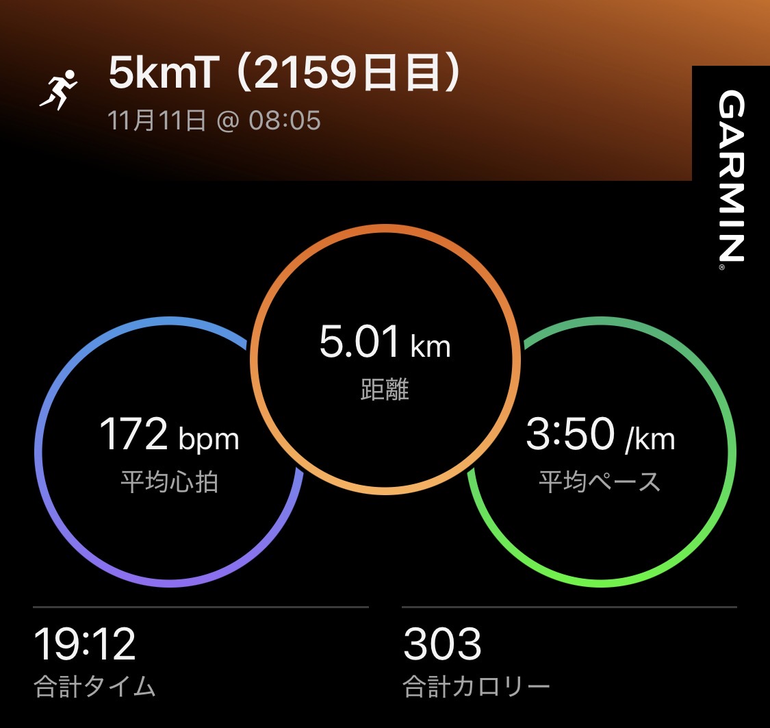 そこを考慮して設定3’45″/kmを3’50″/kmに落とした。