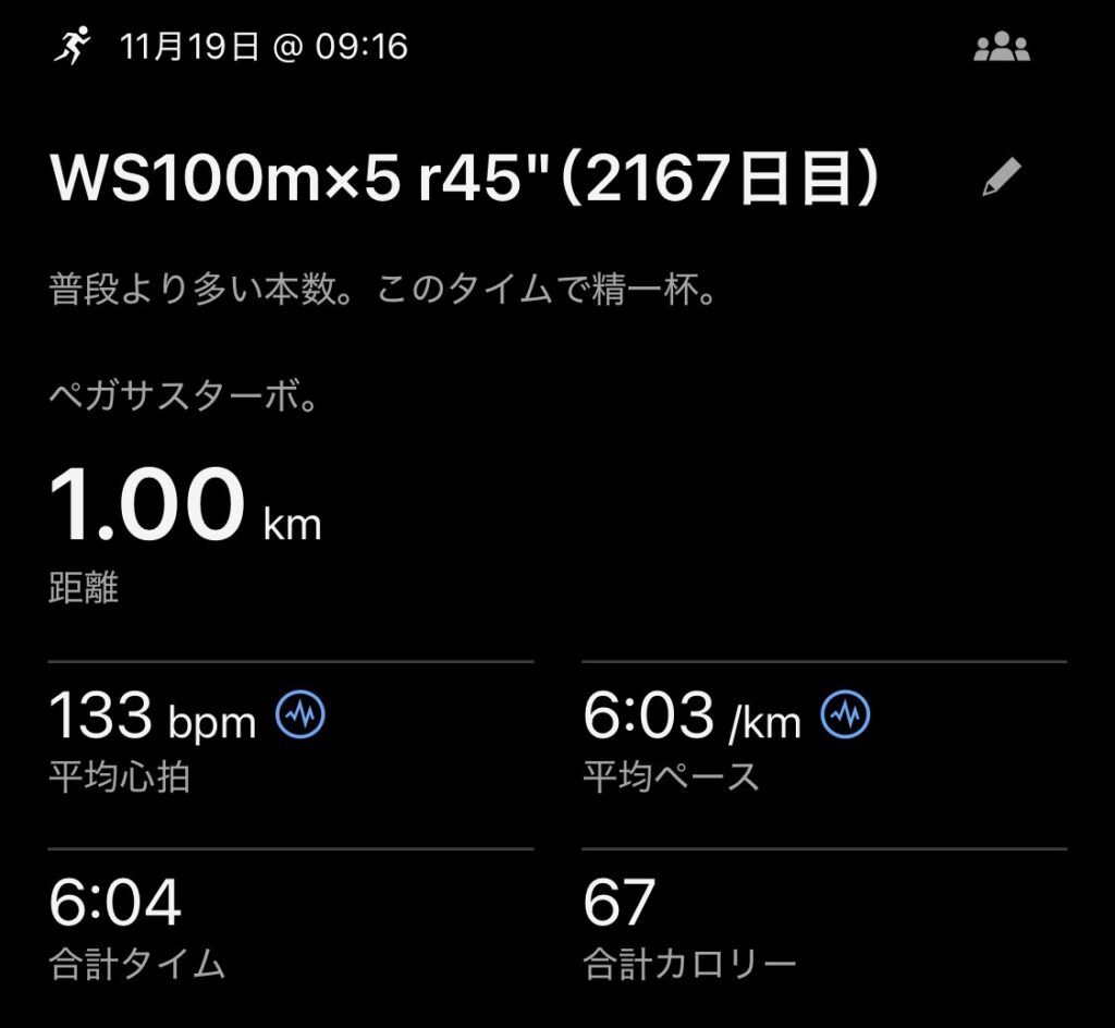 ・WS100m×3(19.0-18.7-19.1-19.0-18.1s)。
