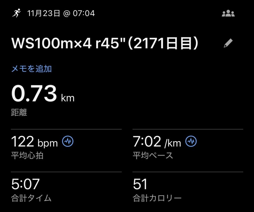 2025.11.23 10kmE + WS100m×4(2171日目)