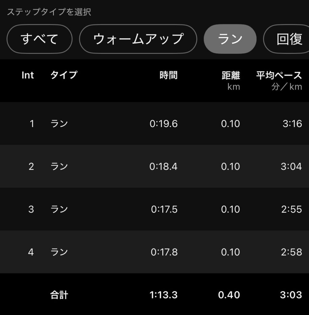 ・WS100m×3(19.6-18.4-17.5-17.8s)。