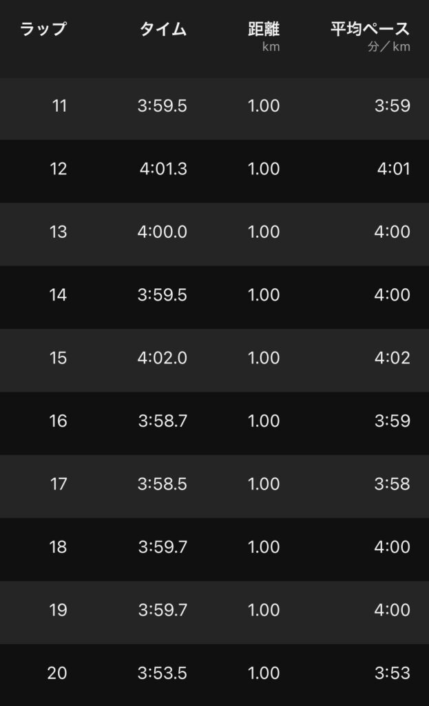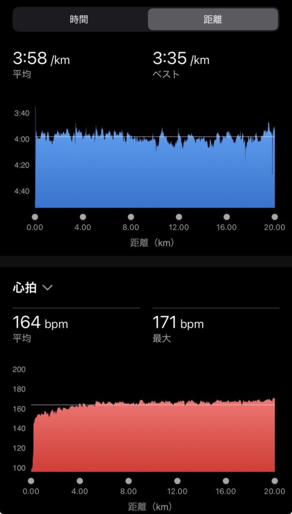 普段20km走ってるので、高負荷であっても20kmは何とか走れると思う。