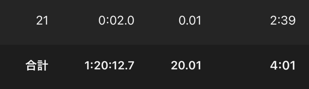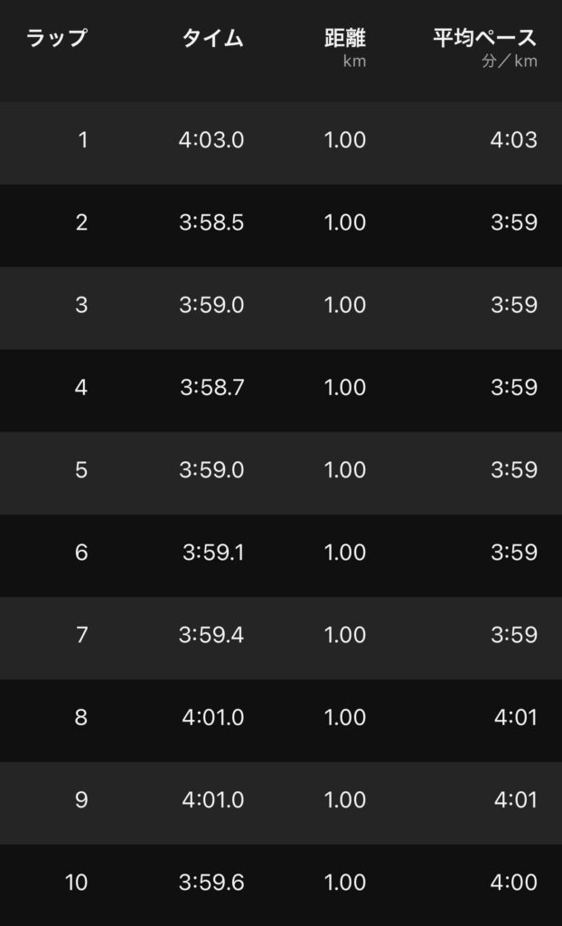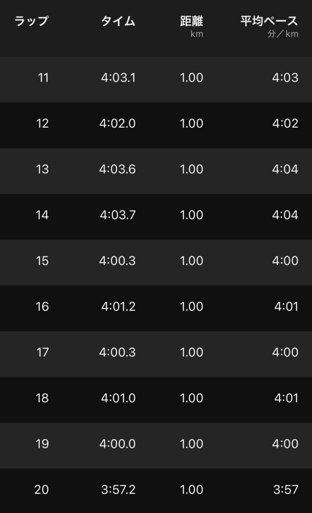 終盤は疲労が溜まり、キロ4を維持する内容だった。