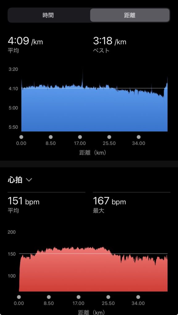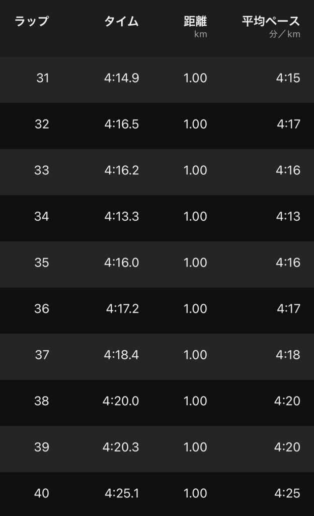 途中、左膝が痛み焦ったが、ペースダウンさせて何とか耐えた。