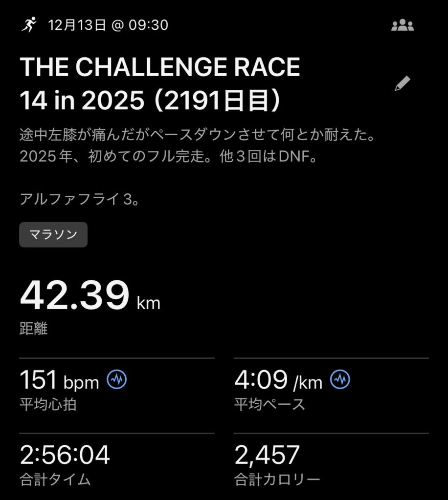・THE CHALLENGE RACE 14 in 2025(板橋区)→ 2:56’04″。