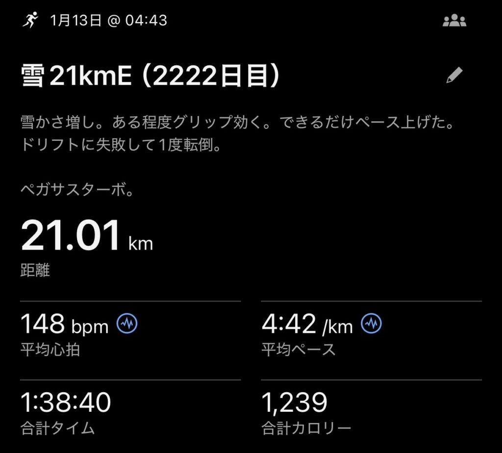 2026.1.13 雪21kmE(2222日目)