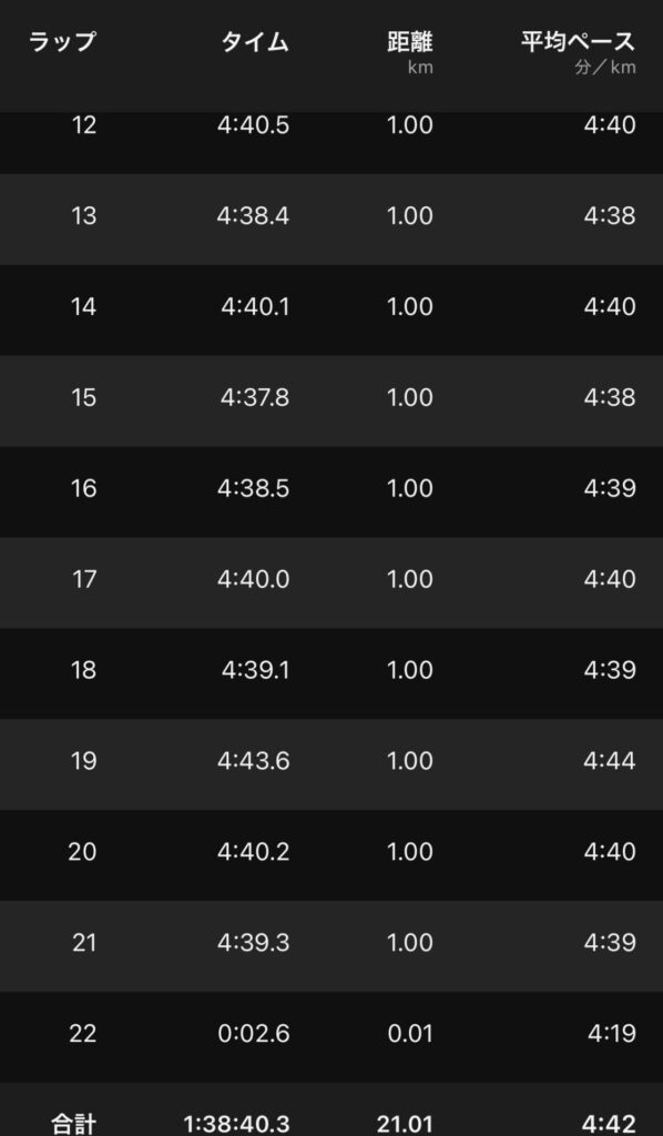 ・雪21kmE(ave4’42″/km)。
