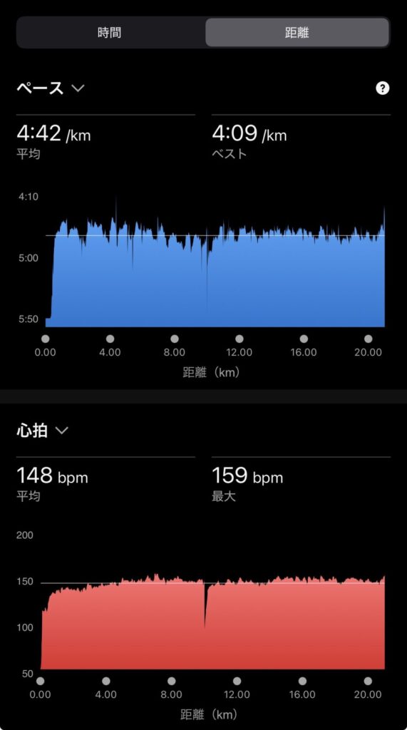 ペースは遅いがave148bpm。