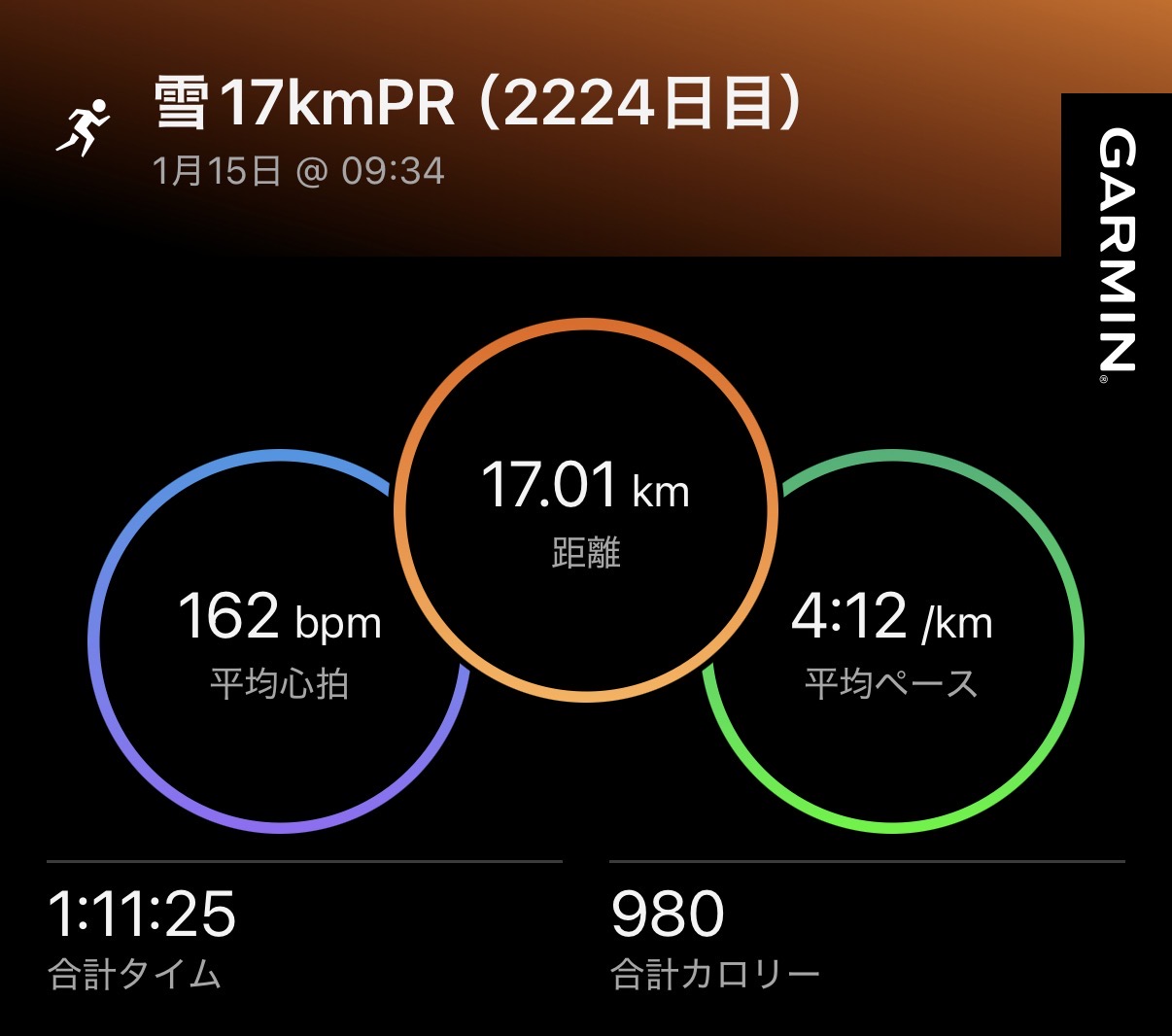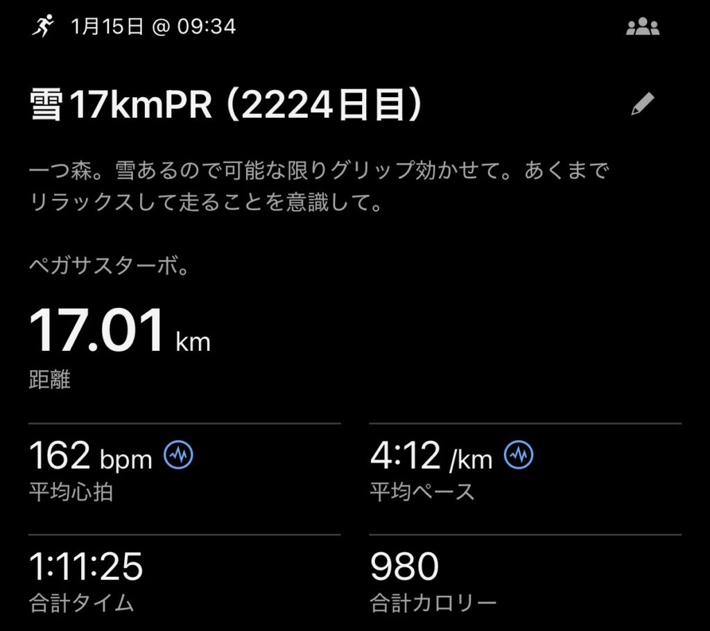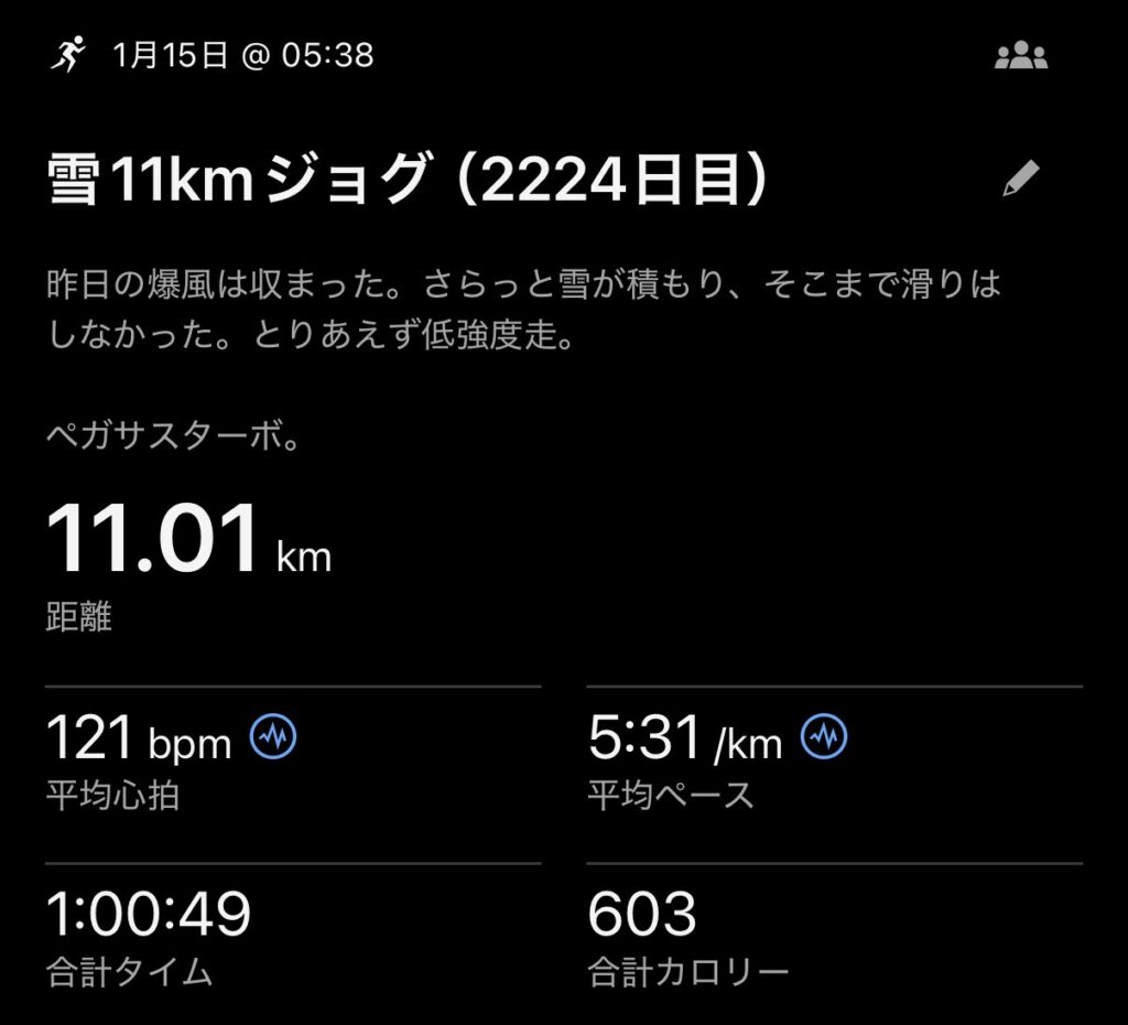 2026.1.15 雪17kmPR etc(2224日目)