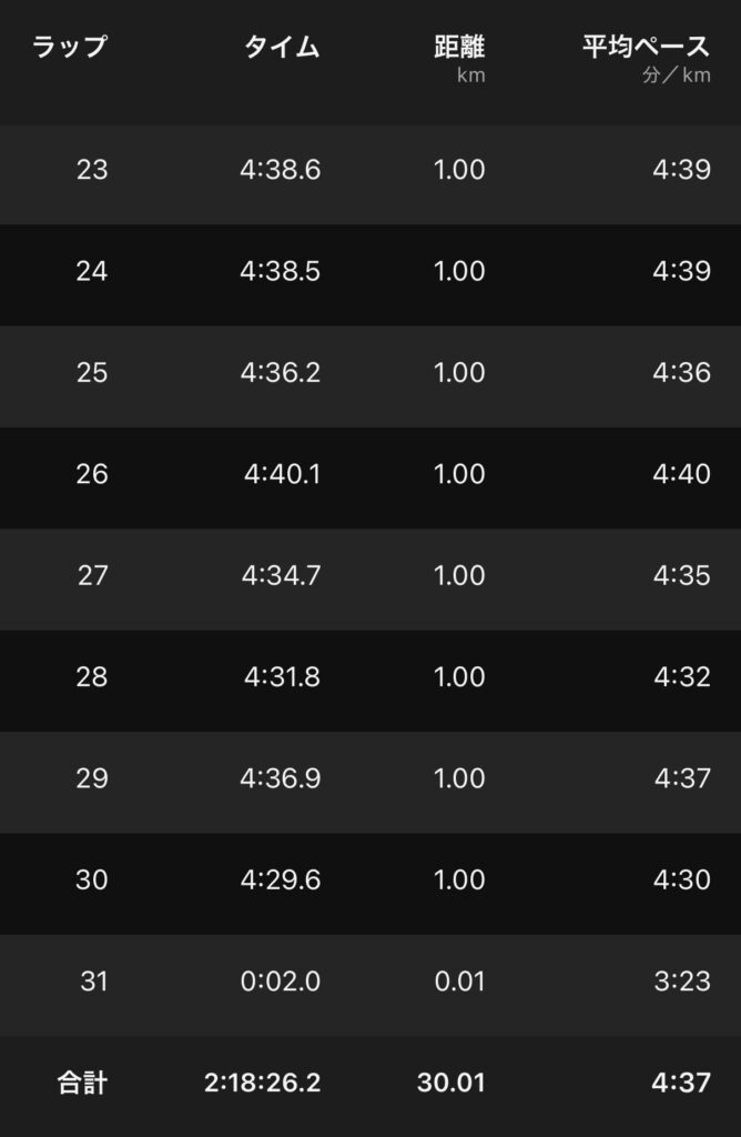 欲を言えば40km走なのだが、、とりあえず30km走ができて良かった。