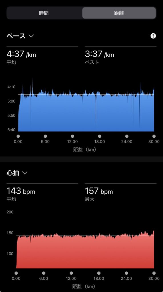 大したペースでないが、それなりに負荷を感じながらの30kmだった。