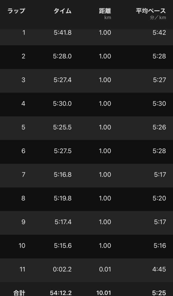 だからリカバリーと割り切って10km走って終了。