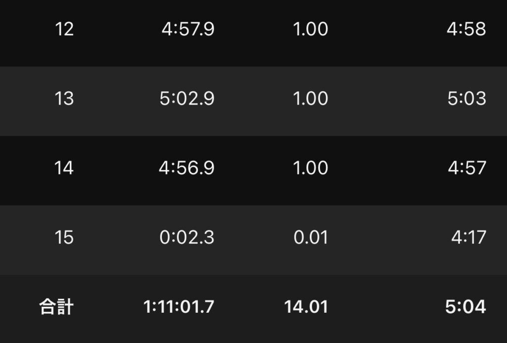 10km予定を14kmに伸ばした。