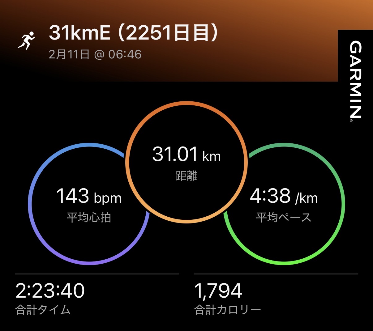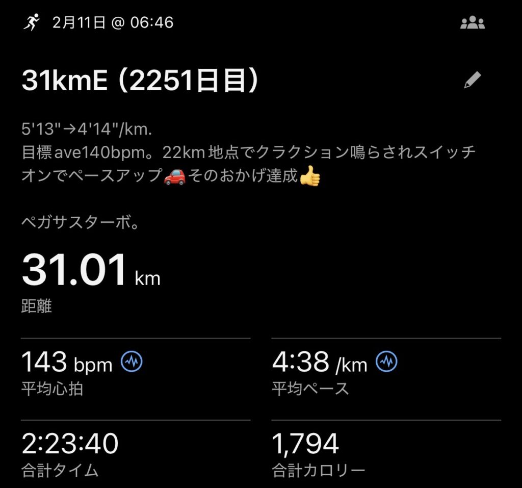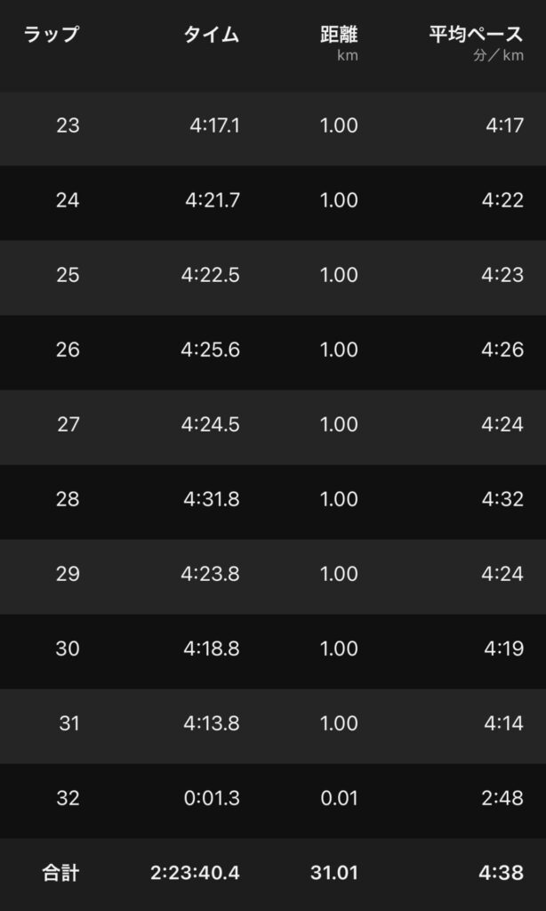 ・31kmE(ave4’38″/km)。