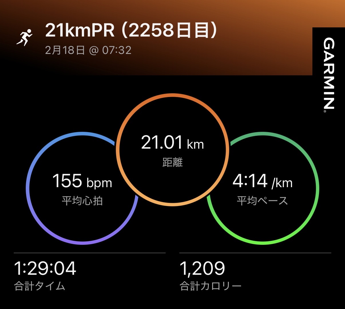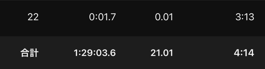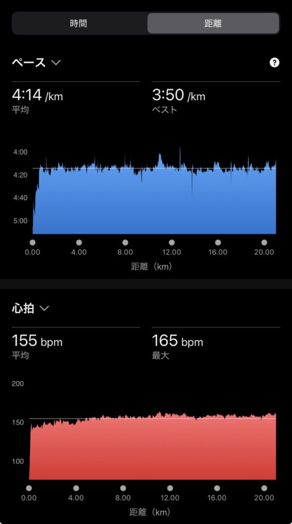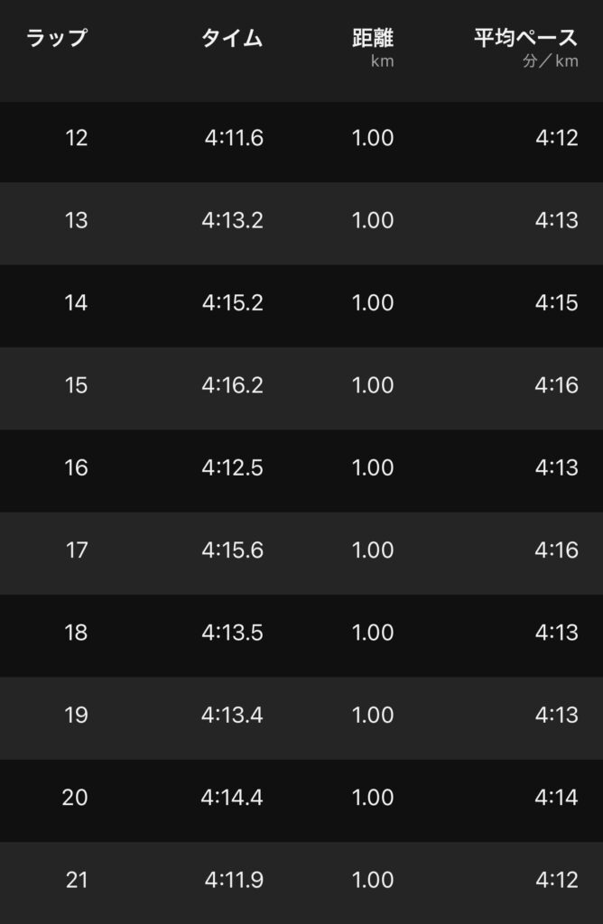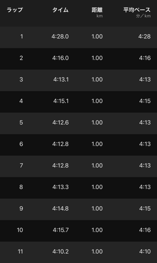 入り4’28″/km、以降4’10″~4’15″/kmでペーラン。