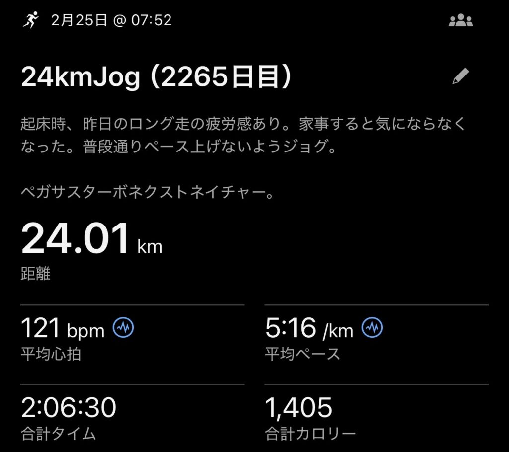 低強度走で24km。
