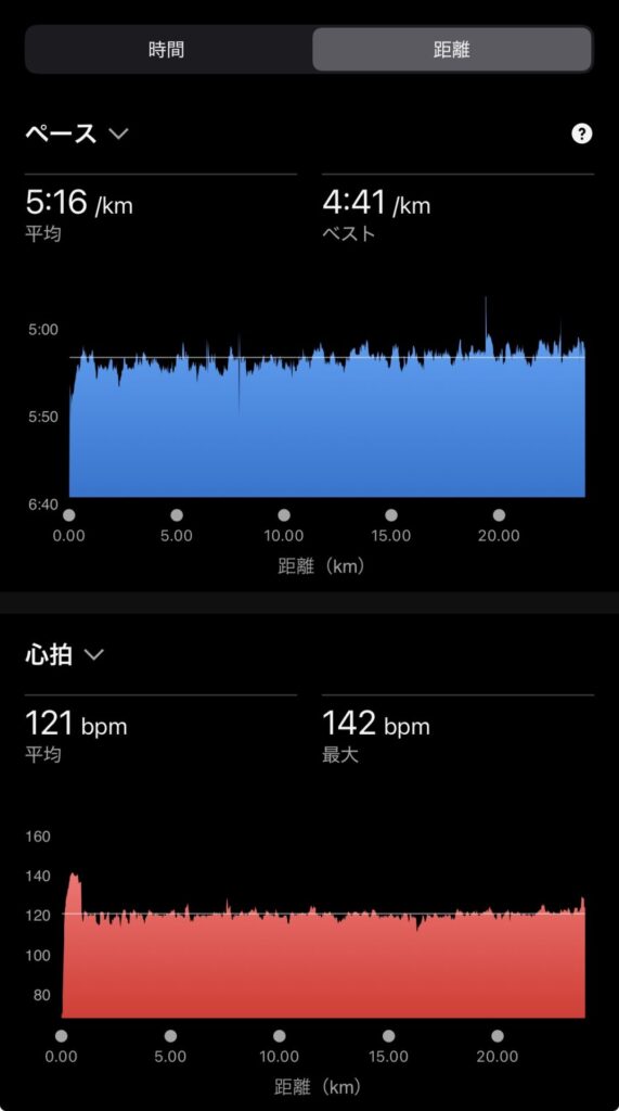 以前、中強度(4’30″/km)前後で20km走を1ヶ月以上継続したことがある。