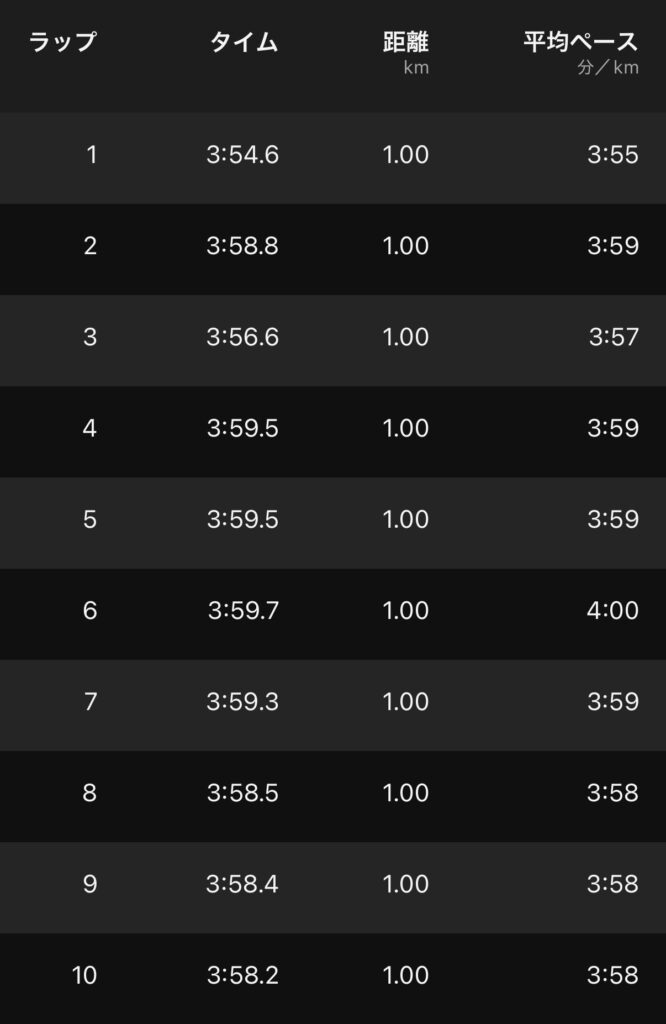 10kmM(ave3’58″/km)。