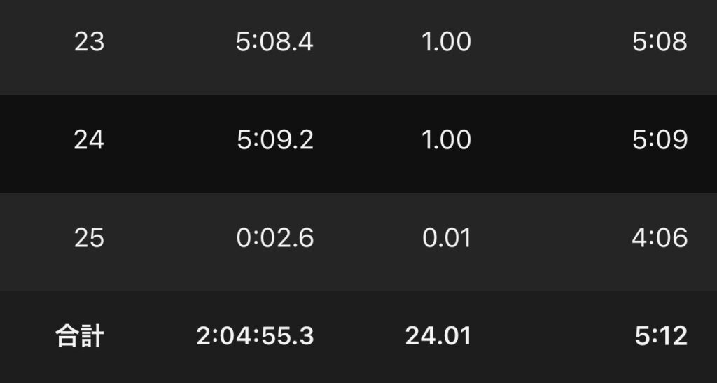 ・24kmJog(ave5’12″/km)。