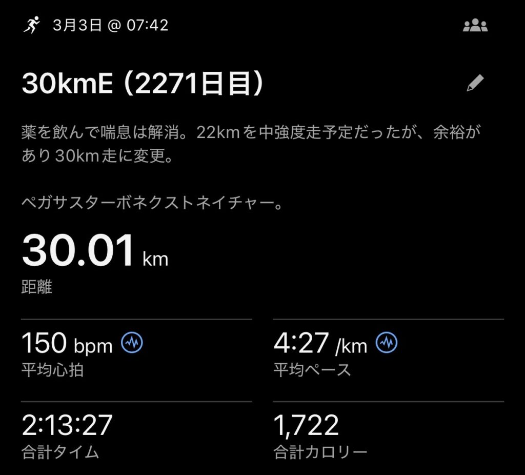 予定変更で30km走