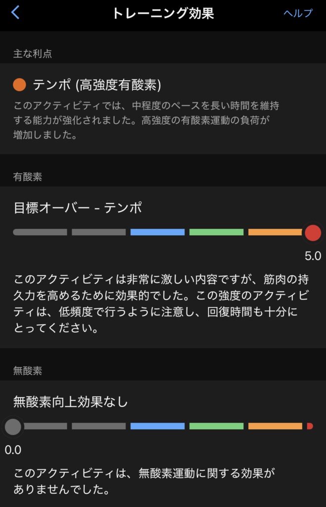 トレーニング効果は、高強度判定。