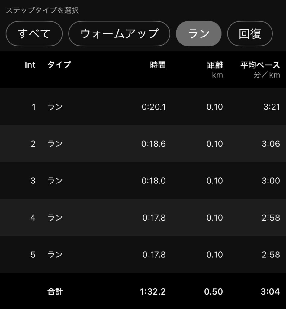 ・100m×5(20.1″-18.6″-18.0″-17.8″-17.8″)。