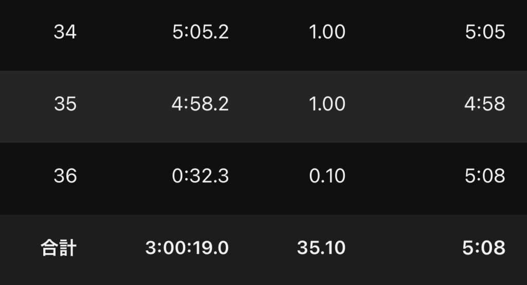キリよく180分、35.1km走った。
