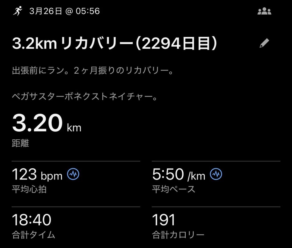 ・3.2kmリカバリー(ave5’50″/km , ave123bpm)。