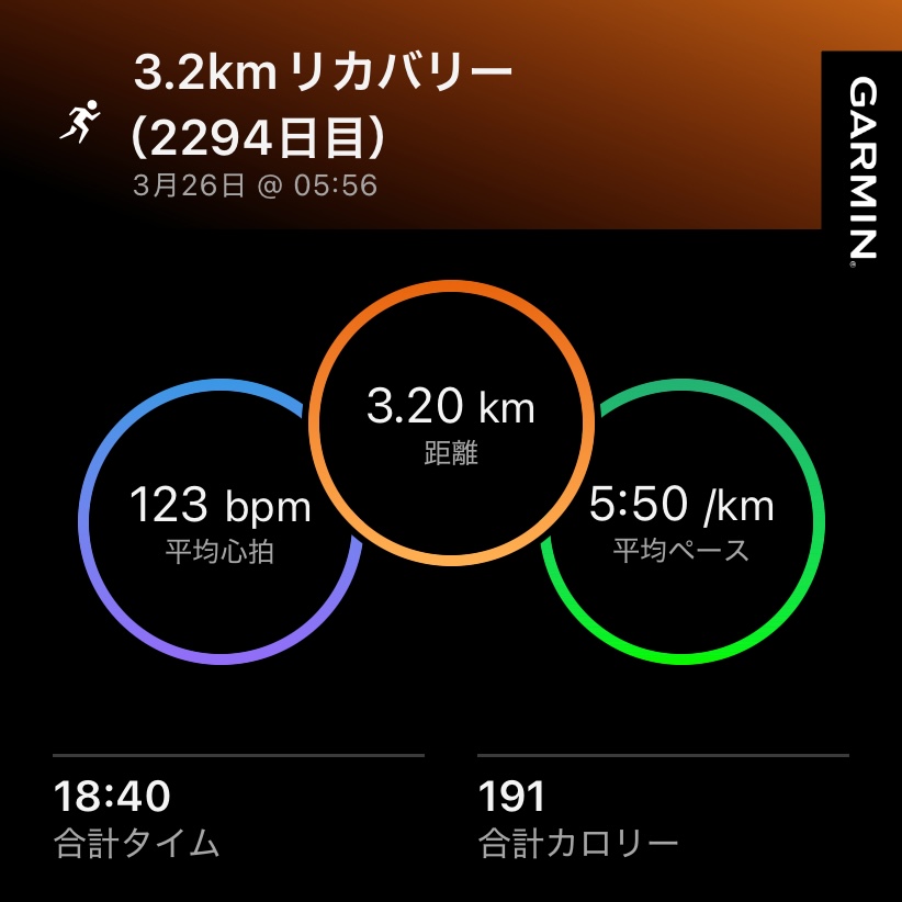 ・3.2kmリカバリー(ave5’50″/km , ave123bpm)。