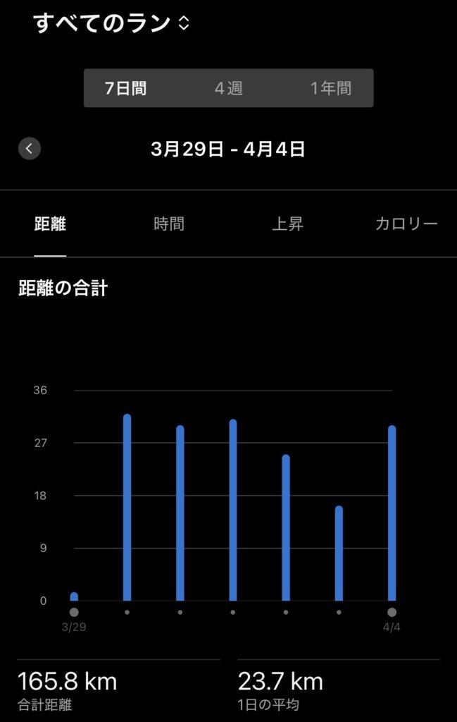 週間走行距離165km。