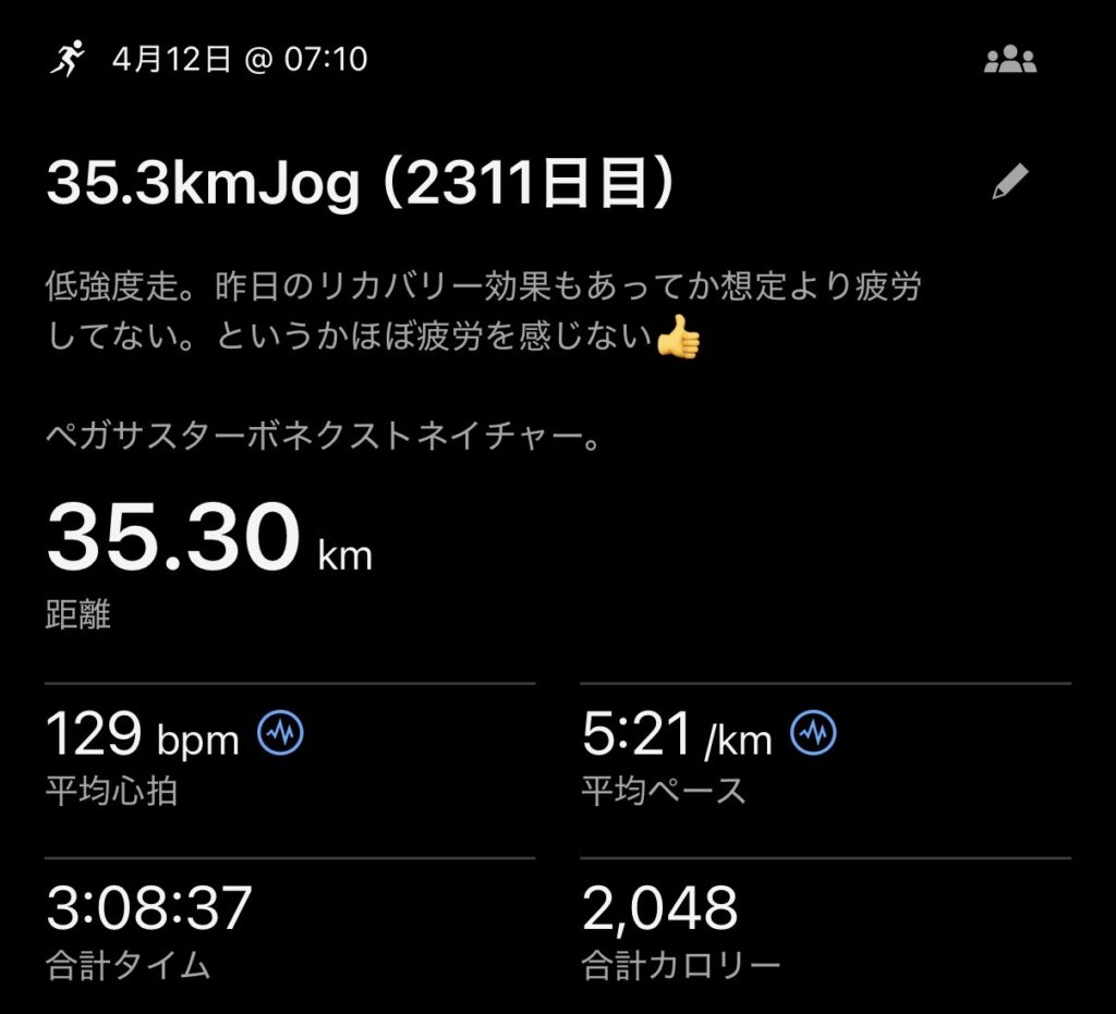 低強度で35.3km走った。