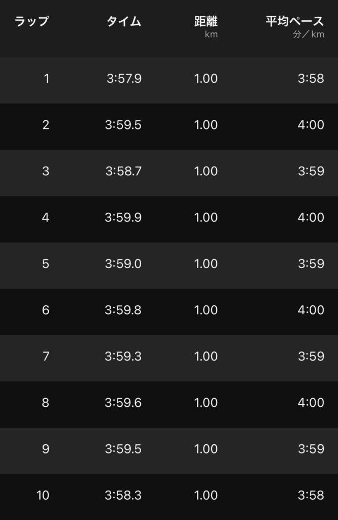 意識して3’59″/km維持。