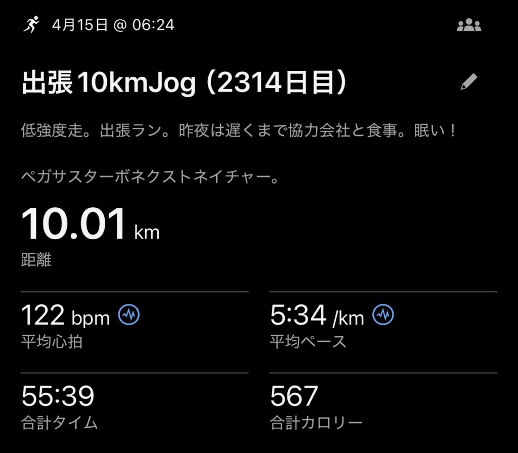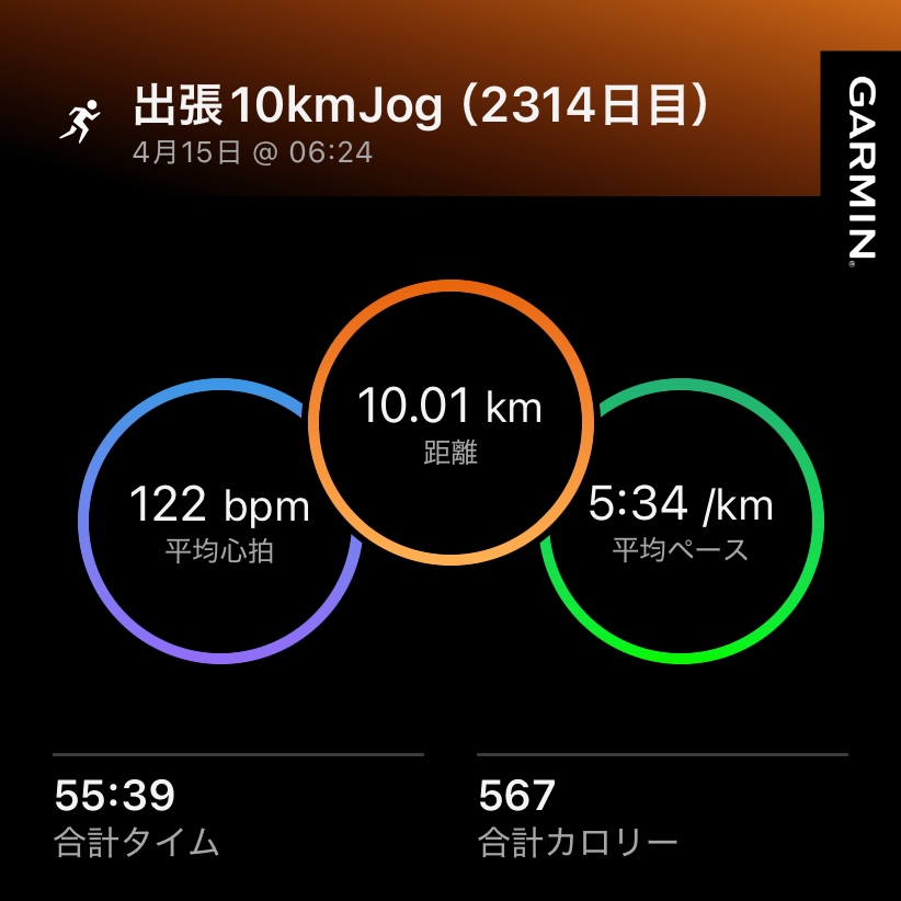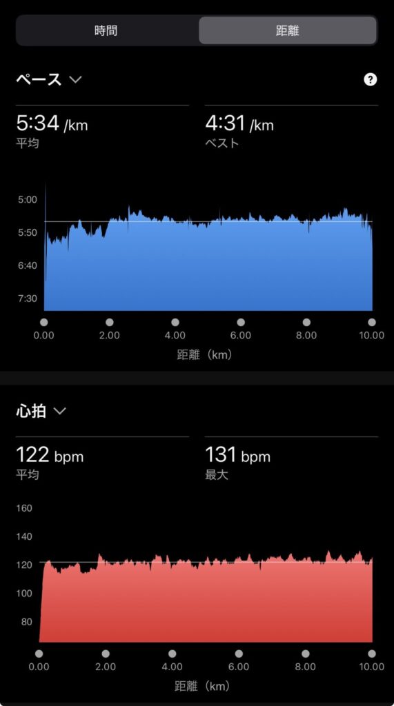 ・10kmJog(ave5’34″/km , ave122bpm)。