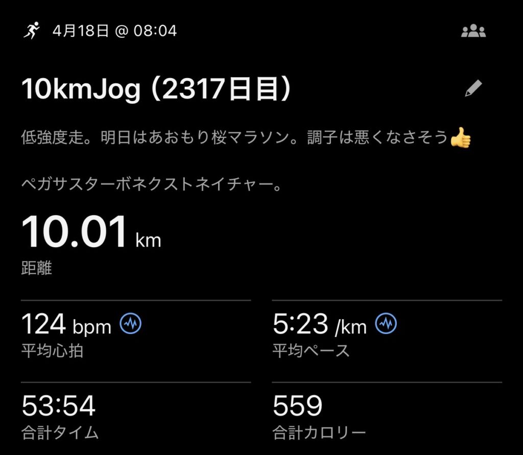・10kmJog(ave4’30″/km , ave146bpm)。